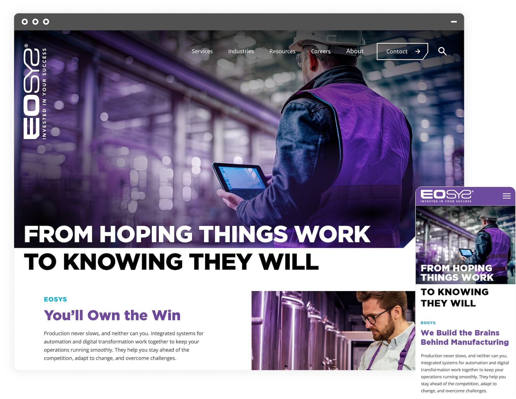 EOSYS needed a site that showed their strength as an employee-owned technical partner solving complex manufacturing problems. The old site did not clearly reflect their rigor, teamwork, and ownership culture. DBS focused on improving lead generation, recruitment, and its position in the market.