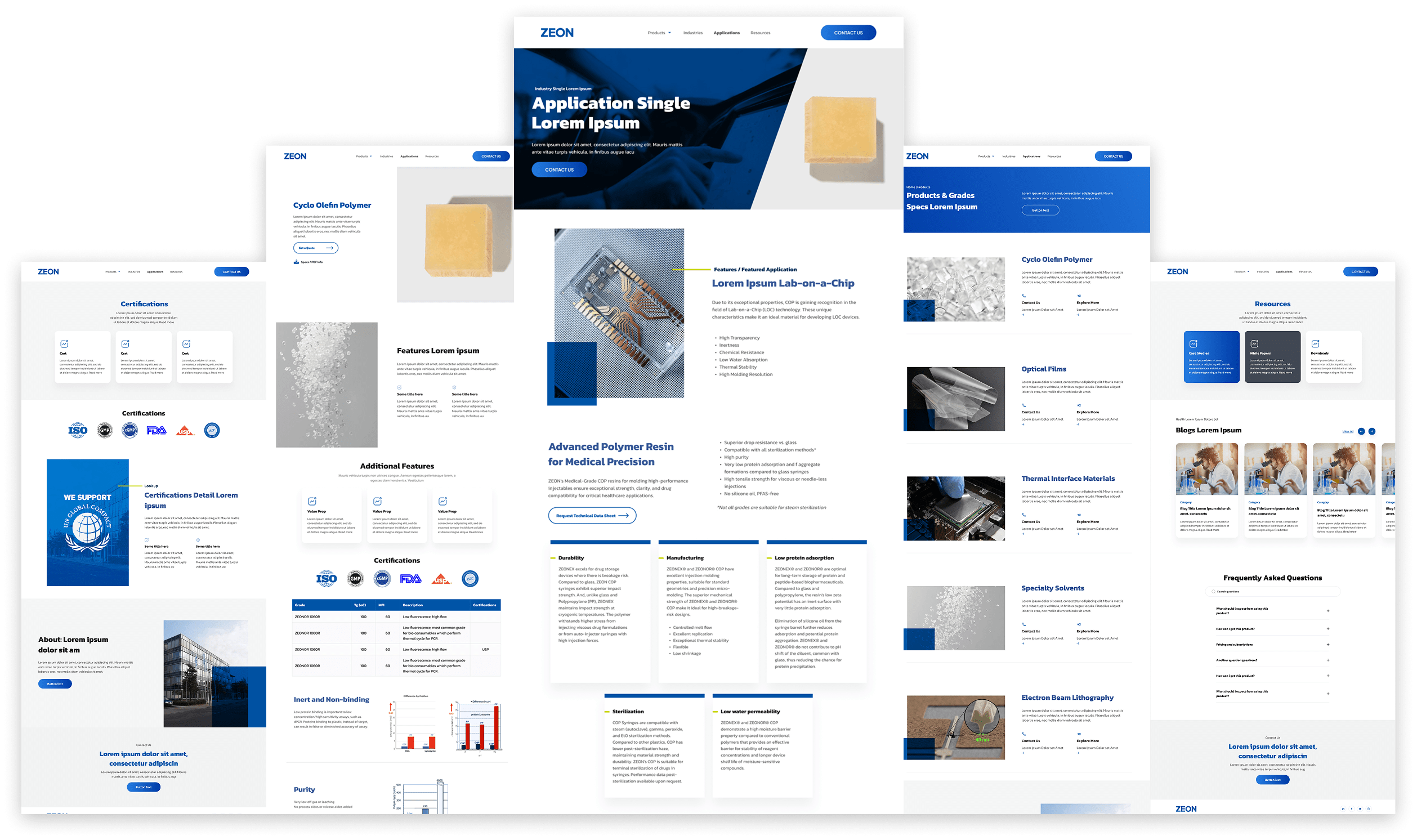 We created flexible digital frameworks for pages represented industries, applications, and products—clean, user-friendly, and ready to grow with ZEON’s evolving needs.